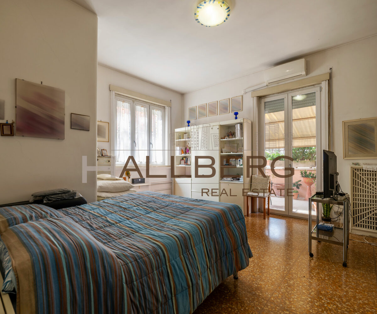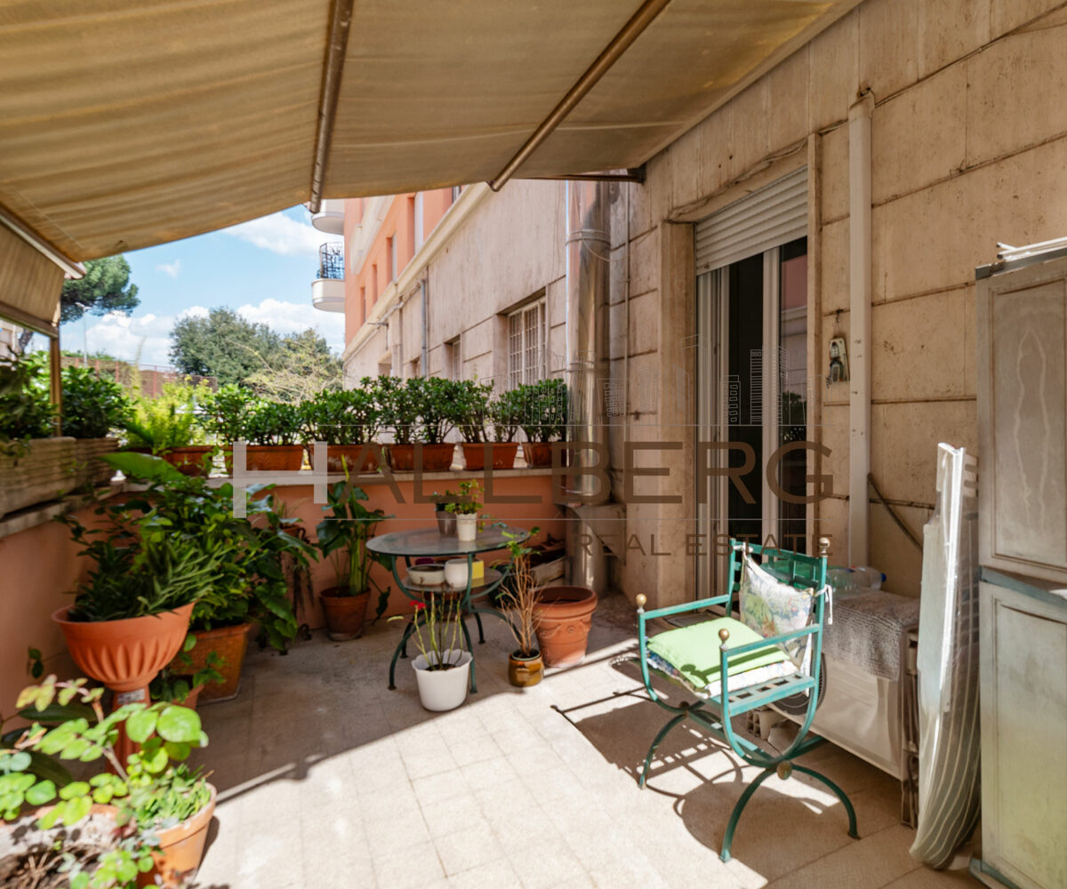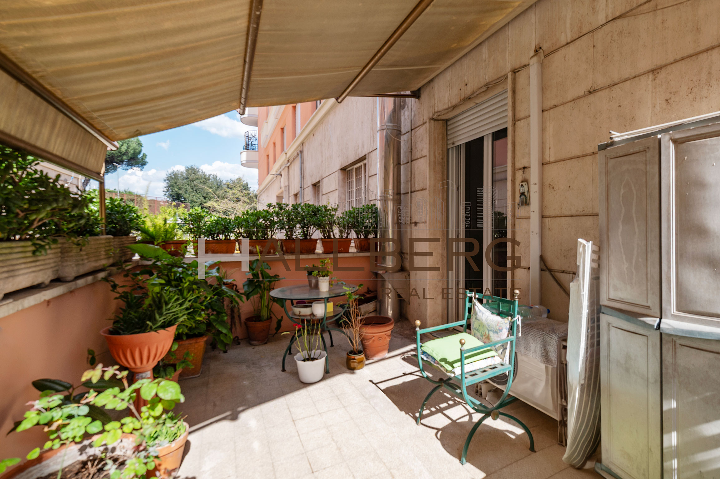NUDA PROPRIETÀ In via Casale Strozzi, una stradina tranquilla adiacente a Piazzale Clodio, a due passi dall’ingresso del Tribunale, proponiamo la vendita di appartamento di 96 mq interni con terrazzo di 25 mq. L’immobile si trova al piano terra ma, per dislivello della strada adiacente, ha un altezza da primo piano. È molto luminoso, con affacci interni gradevoli e silenziosi. Attualmente la distribuzione interna prevede: ingresso, salotto, cucina abitabile, bagno grande, camera da letto matrimoniale e grande stanza armadi che potrebbe, con una diversa distribuzione degli spazi, diventare la seconda camera. Il terrazzo di 25 metri quadri è un vero punto di forza dell’appartamento. Il palazzo è stato completamente ristrutturato di recente. Presente il servizio di portineria. Il riscaldamento è centralizzato con contabilizzatori. Le spese condominiali sono 85 euro mese circa. Di pertinenza l’immobile ha una soffitta. OTTIMO INVESTIMENTO.